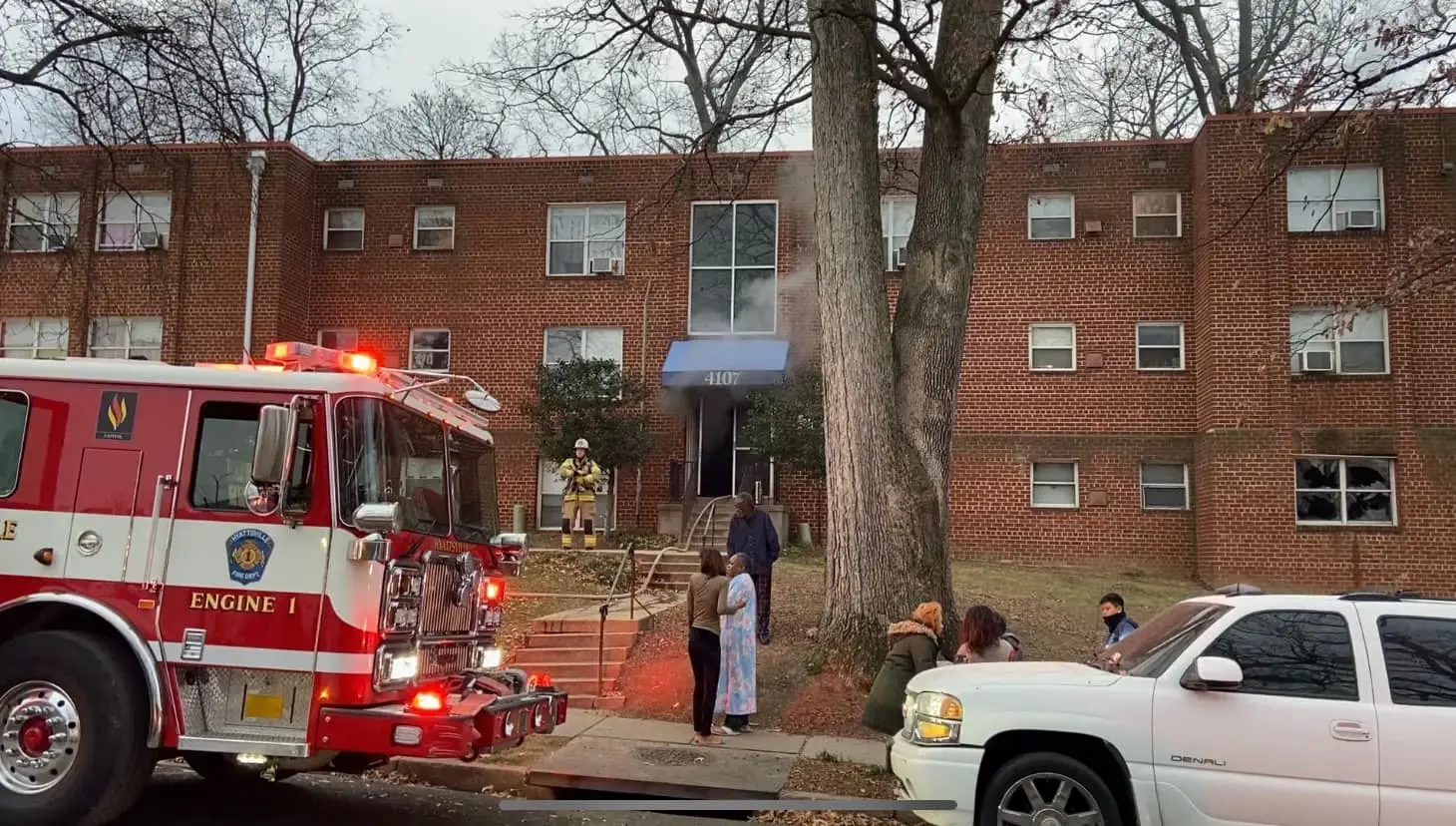 - On December 16, Engine 1 responded first due to the 3100 block of Queens Chapel Rd for the apartment fire. Units had smoke showing from the roof upon arrival.